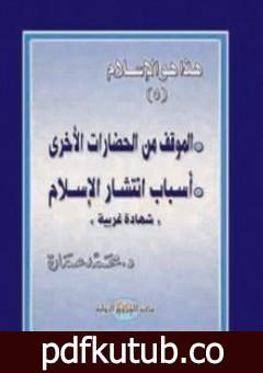 تحميل كتاب الموقف من الحضارات الأخرى – أسباب انتشار الإسلام: شهادات غربية pdf الكاتب محمد عمارةشهادة لأحد العلماء الغربيين وهو سير توماس أرنولـد، بيَّن فيهـا أن لانتشـار الإسلام أسبابًا: منهـا ما هو ذاتي نابع من الإسلام ذاته؛ كنصاعـة حقيقـة الإسلام وملاءمتهـا للفطـرة السليمـة، ومنها ما هو خارجي؛ كفساد رجالات الأديان الأخرى. إنه شهادة على زيف دعاوى انتشار الإسلام بالسيف والعنف والحرب والإكراه، التي روَّج لها – ولا يزال – مشروعُ الهيمنة الغربية.ماهو موقف الإسلام من مبدأ صدام الحضارات؟؟ ومن مبدأ الصراع بوجه عام ؟؟ وما هو تاريخ الاستعمار الغربى مع “نزعة” صدا الحضارات؟؟.. وهل كان حديث ” هنتيجتون ” عن صدام الحضارات.. ” تبشيرا ” بهذا الصدام ؟ أم هو ” كاشف ” عن واقع الموقف الغربى فى ” ممارسة “صدام الحضارات؟؟ .. وما هو المخطط الذى أشار إليه فى إدارة هذا الصدام؟؟ وهل كتب الاستعمار الغربى على المسلمين صدام الحضارات – رغم رفضهم لهذا الصام -؟ كما كتب على المسلمين القتال – مع كرههم لهذا القتال؟!الكتاب الخامس من سلسلة هذا هو الإسلام، ويحتوي على الموقف من الحضارات الأخرى، وأسباب انتشار الإسلام شهادة غربية.هذا الكتاب من تأليف محمد عمارة و حقوق الكتاب محفوظة لصاحبها